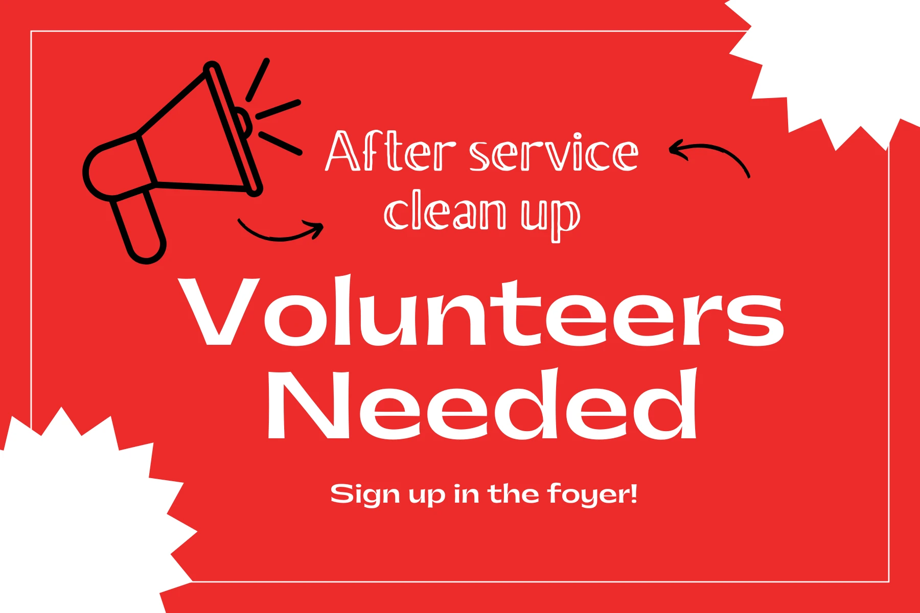 Sign up in the lobby to help clean up the sanctuary & foyer after the Sunday service.